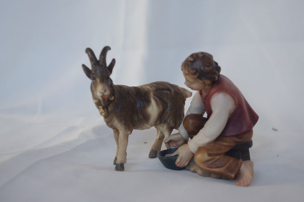 Junge, Ziegen melkend